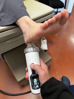 At Atlanta Sports Podiatry, we are happy to offer our patients Shockwave therapy as an additional non-invasive option for treating chronic pain. Shockwave therapy works by emitting an acoustic wave through a handheld device into areas where you are experiencing pain. The high energy produced by the device reaches deep into your tissues, tendons, and bones to promote regeneration and the natural healing processes of your body.